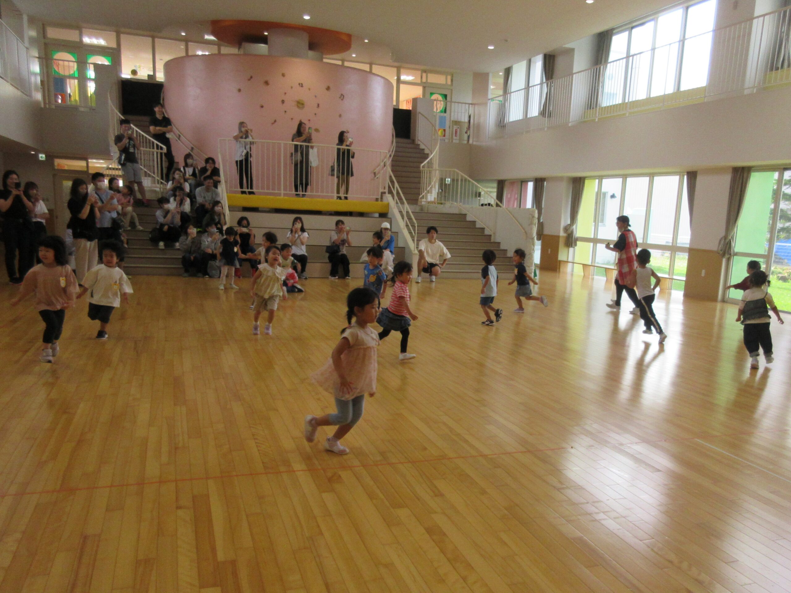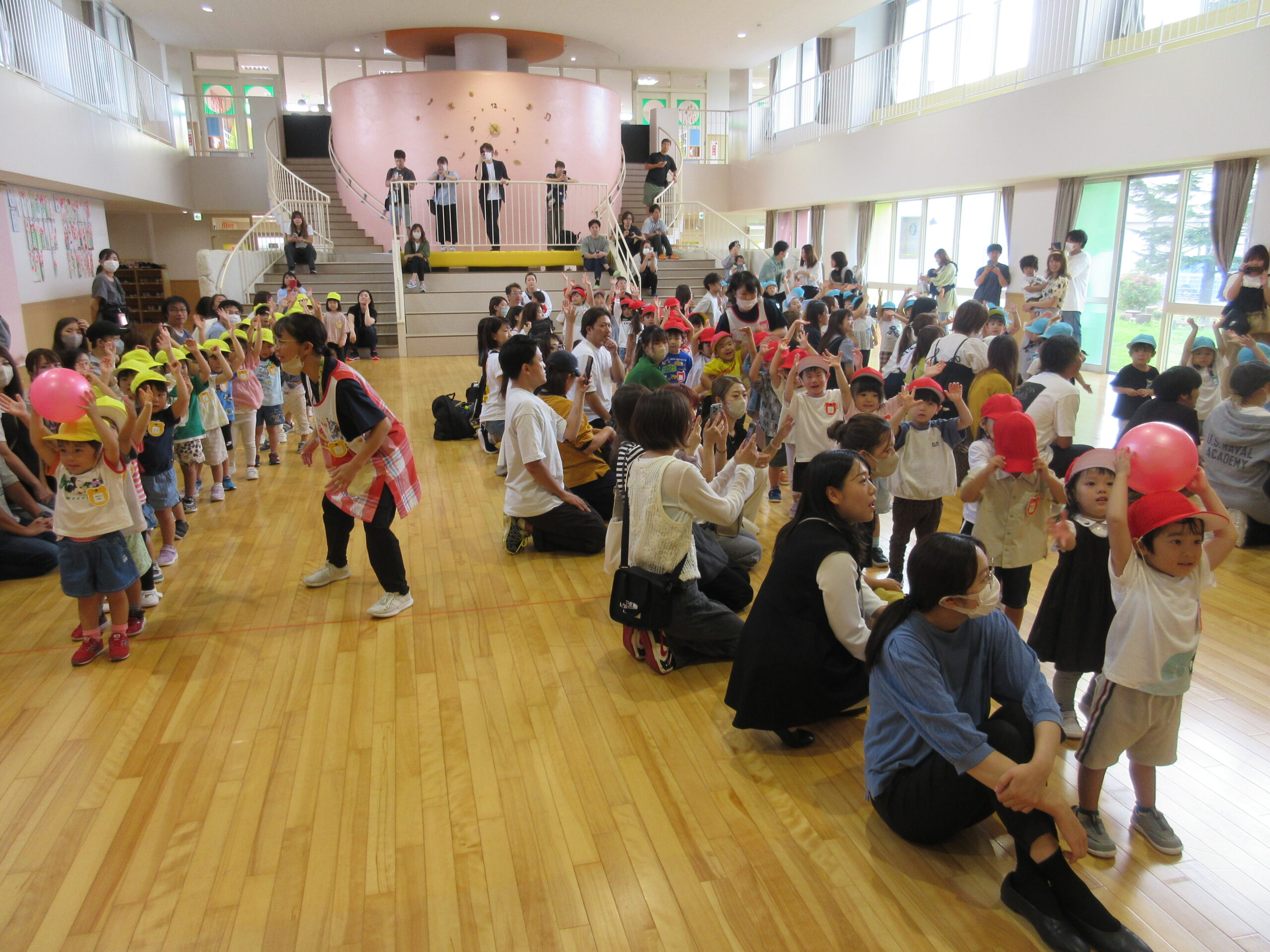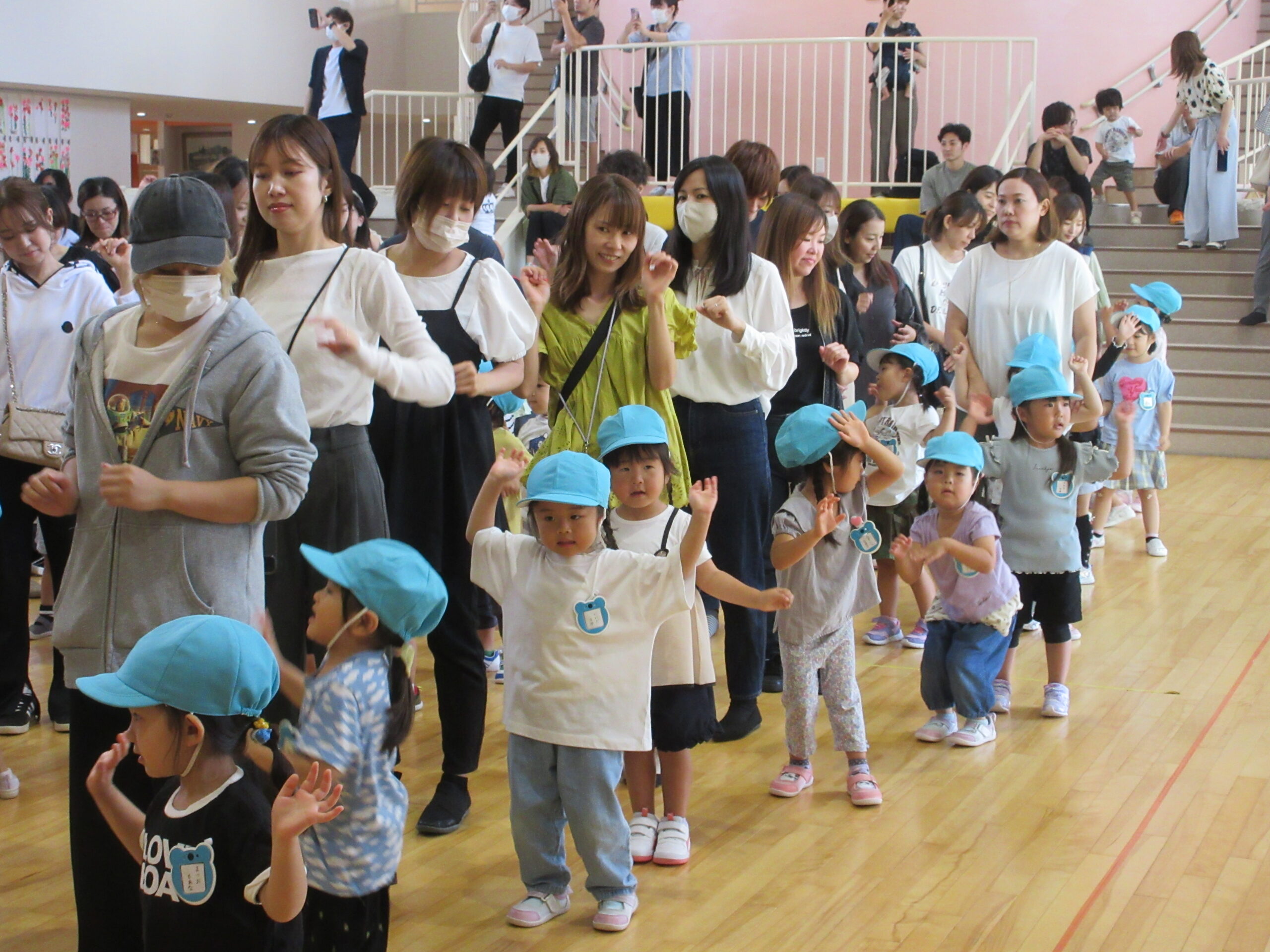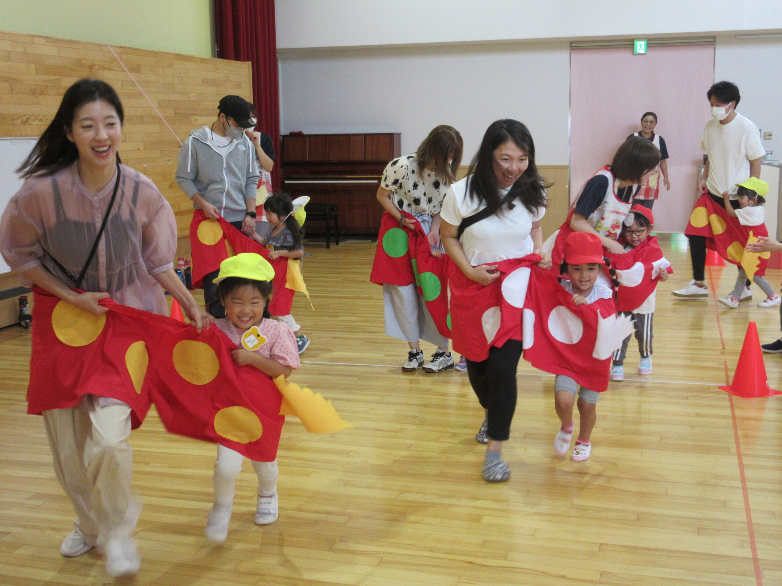 本日9月20日(金)は年少学年の参観日です。年少学年は運動遊びということで親子でボール送りリレーをし上手に手渡しながら楽しむ姿がみられました。その後、親子でペアになりデカパンツ競争をしました。クラス対抗で行い親子共に競争心がマックスになった一面が見られたのではないでしょうか。また、「ぴったしカンカンゲーム」ではクレヨンしんちゃんのキャラクター選びに迷いながらも決断してましたね!年少さんは保護者の方からなかなか離れられないお友達もおりましたが、2学期が始まり園生活に慣れ、成長した姿をお見せできたと思います。今日は親子で楽しく競技ができ、ご協力頂きました保護者の皆様ありがとうございました。