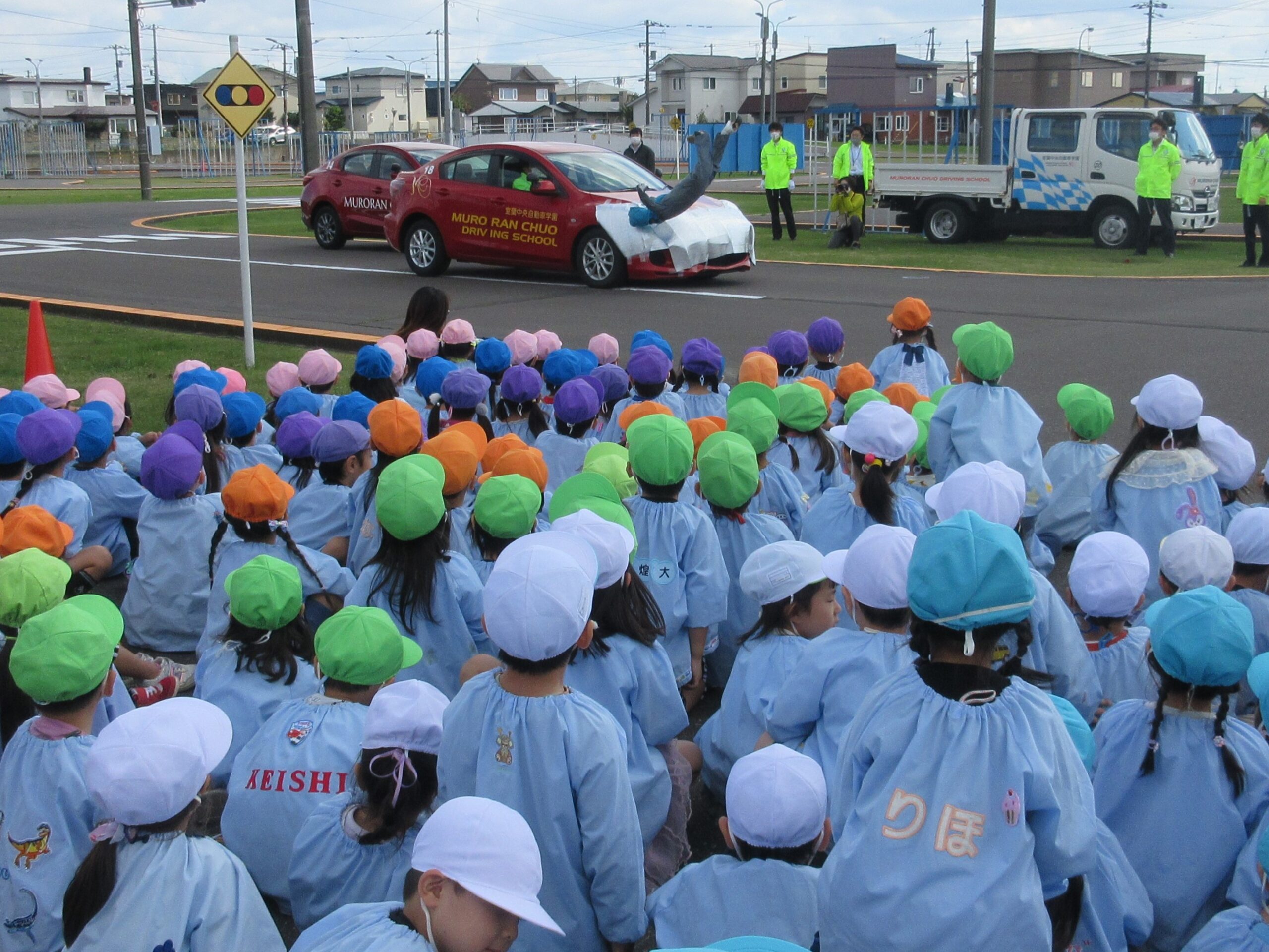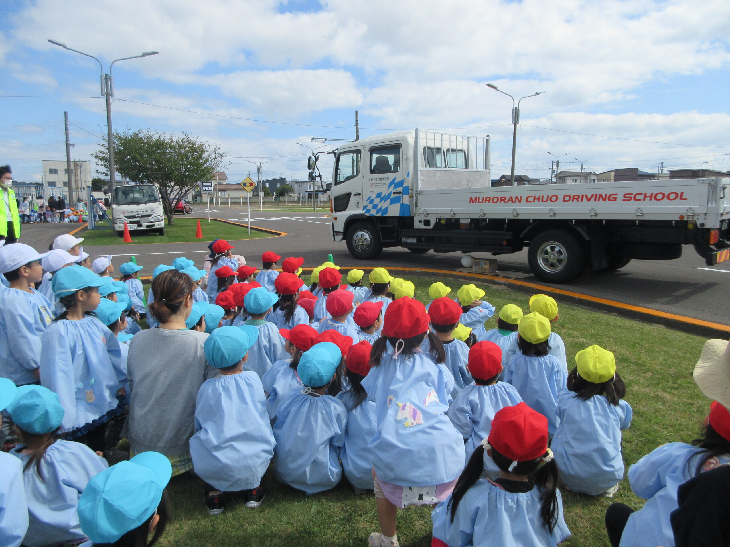 今年度も9月24日(火)中央自動車学校を訪問しました。今年は晴天に恵まれた交通安全教室でありましたので大変嬉しく思います。子ども達は危険な場面や衝撃的な場面を見学し、それぞれに危険性を学習しました。箇所箇所に応じて自動車学校の方々からの説明を受け各自が事故にあわないように気を付けることを再確認しました。大変学びの多い交通安全教室となりました。学習を終え、最後には修了証書を頂き子ども達は満面の笑みでした。中央自動車学校の皆様方、お忙しい中ありがとうございました。