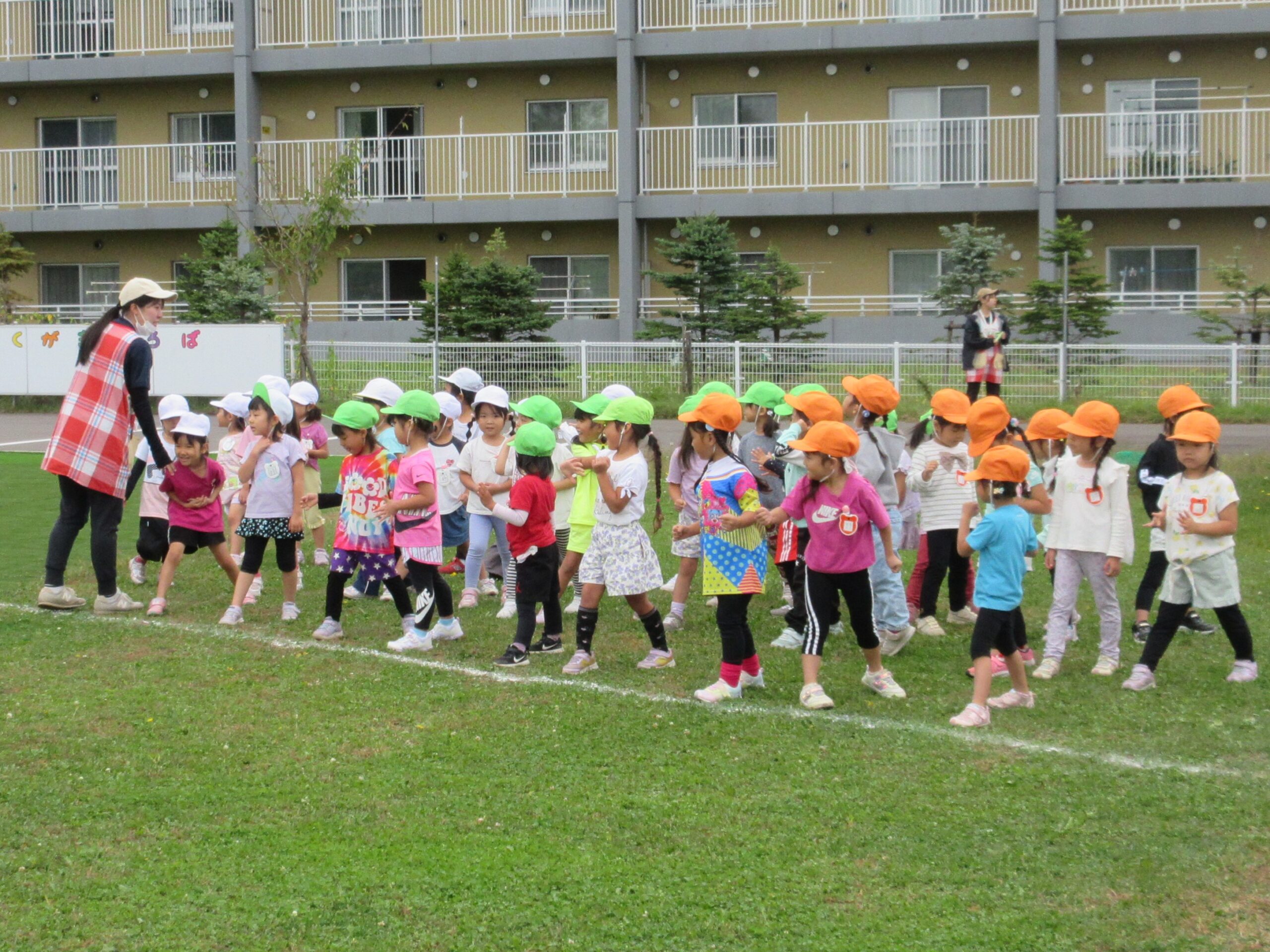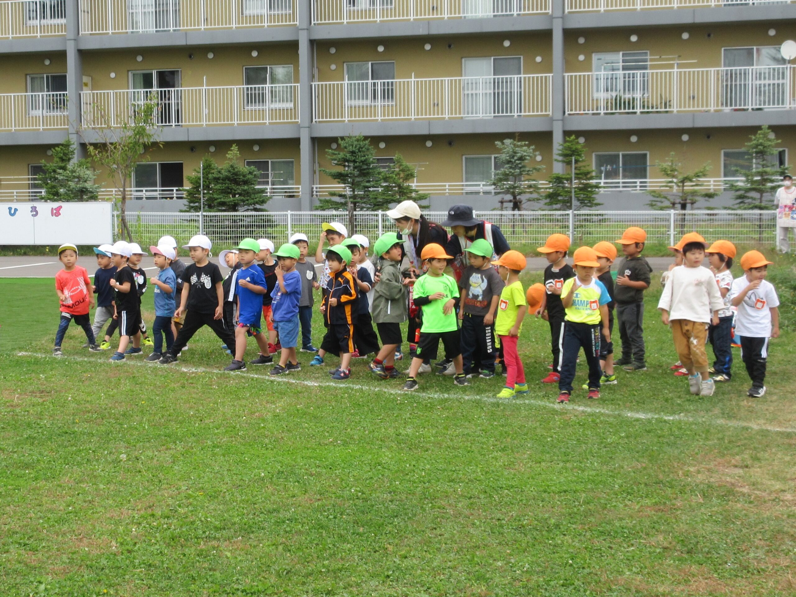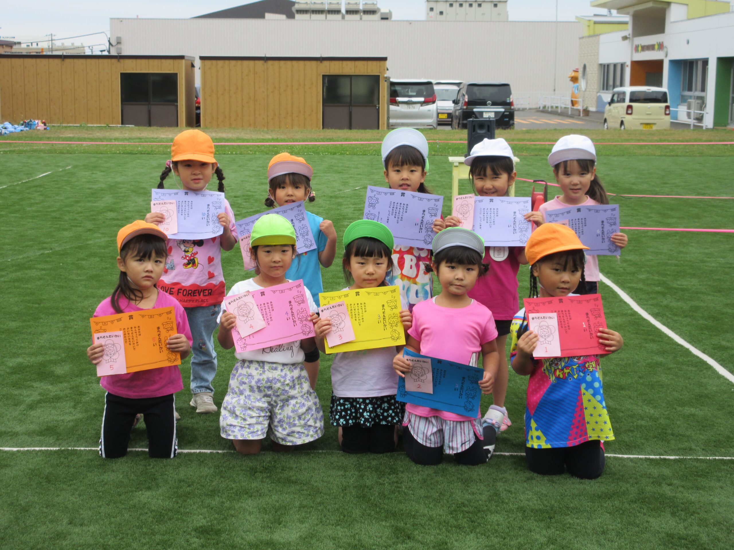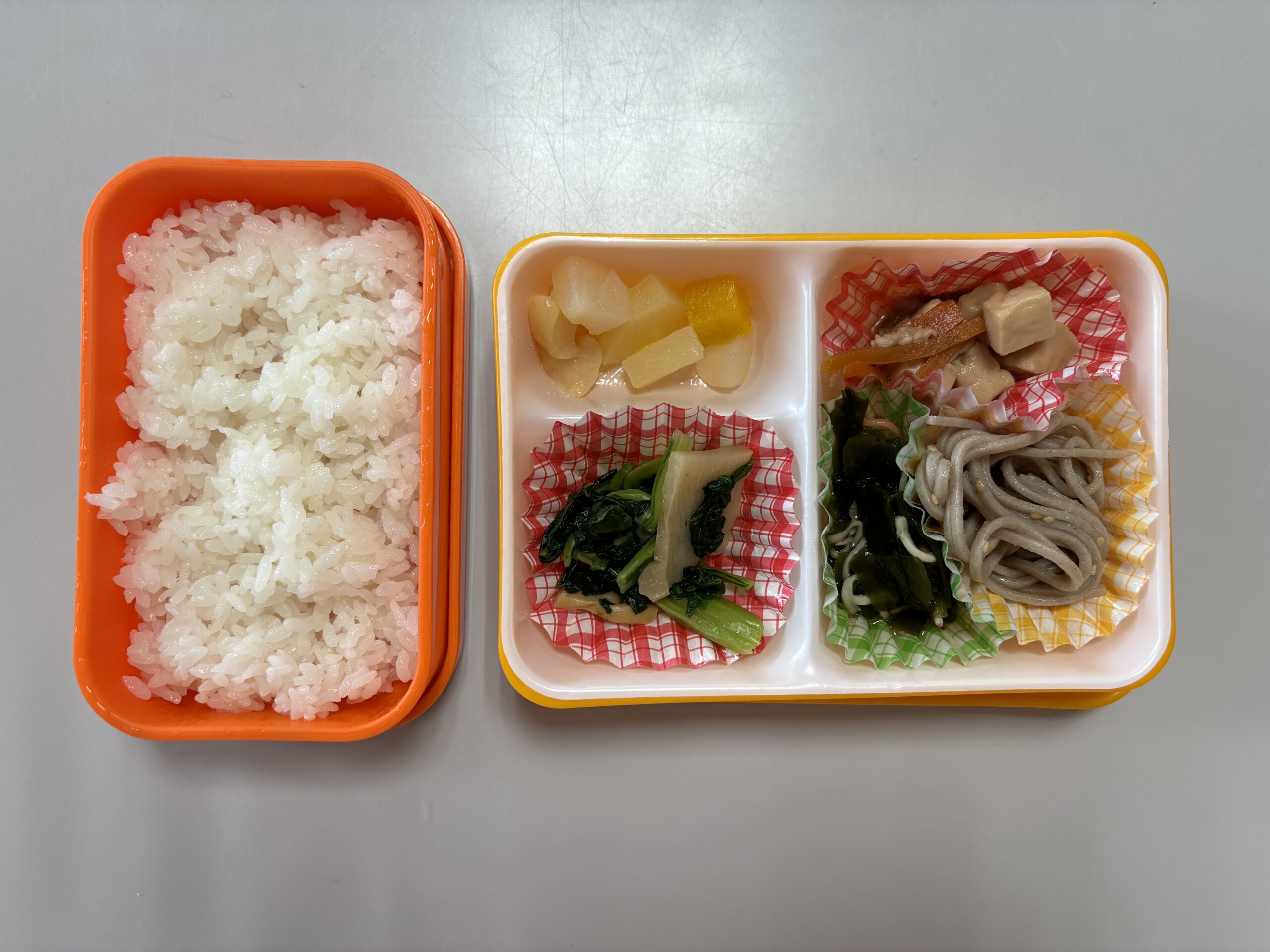 (80)令和6年度「年中学年 マラソン大会」 2024年10月3日 園内ブログ 本日10月3日(木)は年中学年のマラソン大会を実施しました。2学期に入り各学年毎にマラソン練習を開始していましたが、年中学年は年少での経験を活かし取り組むことができたのではないでしょうか。距離が長くなったことで辛い気持ちになる子もいましたが、それぞれのペースでゴール目指して最後まで一生懸命走り切ることができました。みんなよく頑張りましたね!応援にお越しの保護者の皆様、有難うございました。 今日の病気欠席者は発熱2名、鼻水1名、腹痛・下痢1名です。 🍙今日の給食🍙