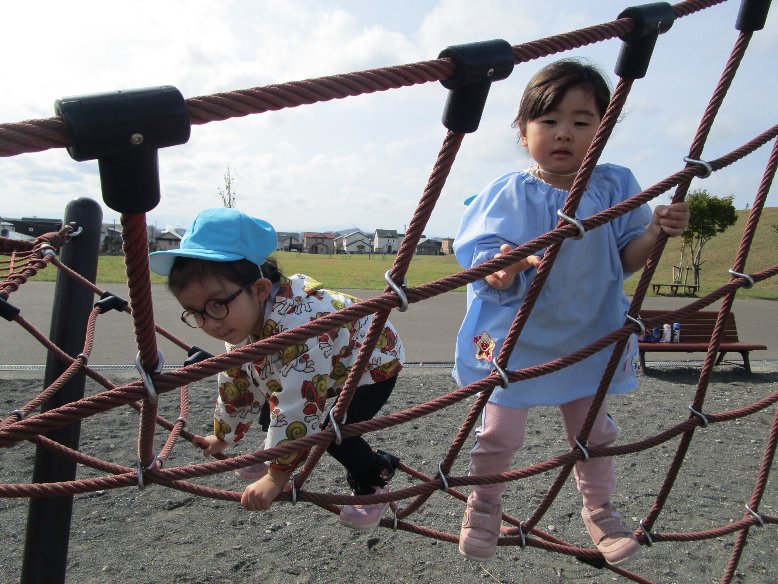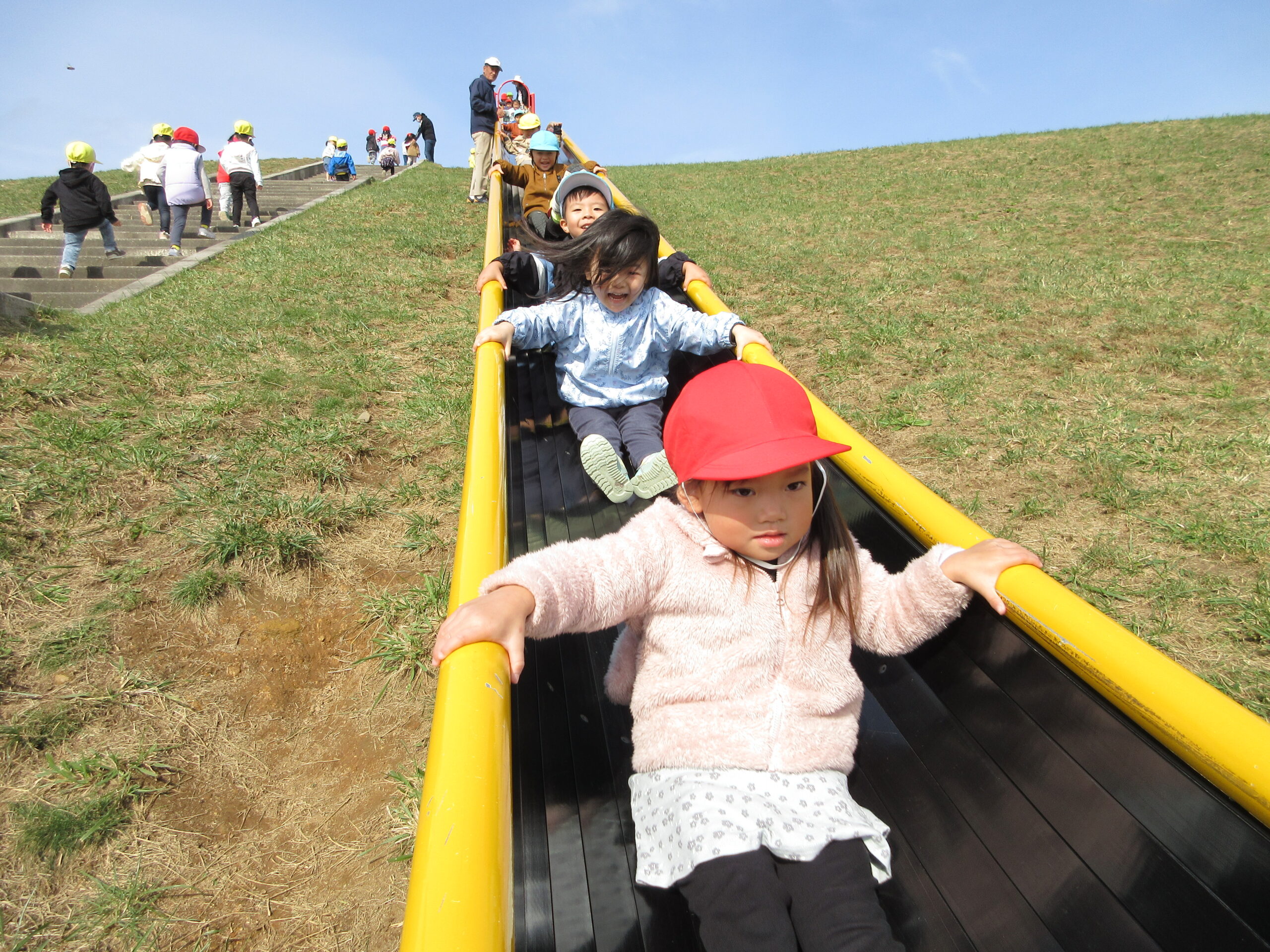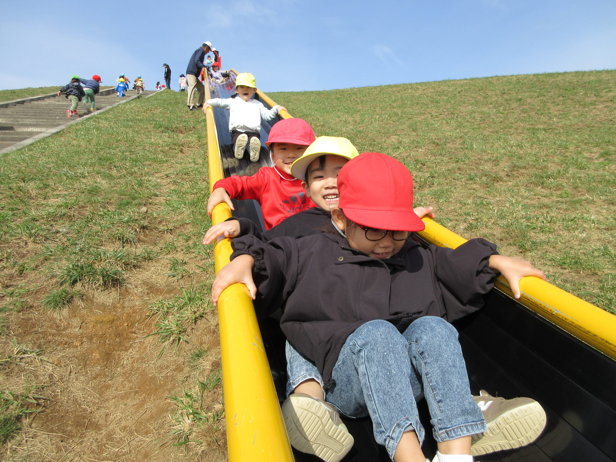 (86)令和6年度「年少学年 南公園」 2024年10月18日 園内ブログ 秋の深まりとともに秋風が身にしみるようになってきました。今日10月18日(金)年少学年が南公園に出かけました。10時15分に園を出発しバスの中ではウキウキ気分な様子が伺われました。長い滑り台に動揺するお友達もいましたが、1回滑ると度胸もつき繰り返し滑るお友達が目立っていました。他ブランコやうんてい、アスレチック等でも楽しんで積極的に遊ぶ姿が見られていました。 今日の病気欠席者は風邪1名、嘔吐1名、発熱1名、咳1名、体調不良1名、大事をとって1名です。