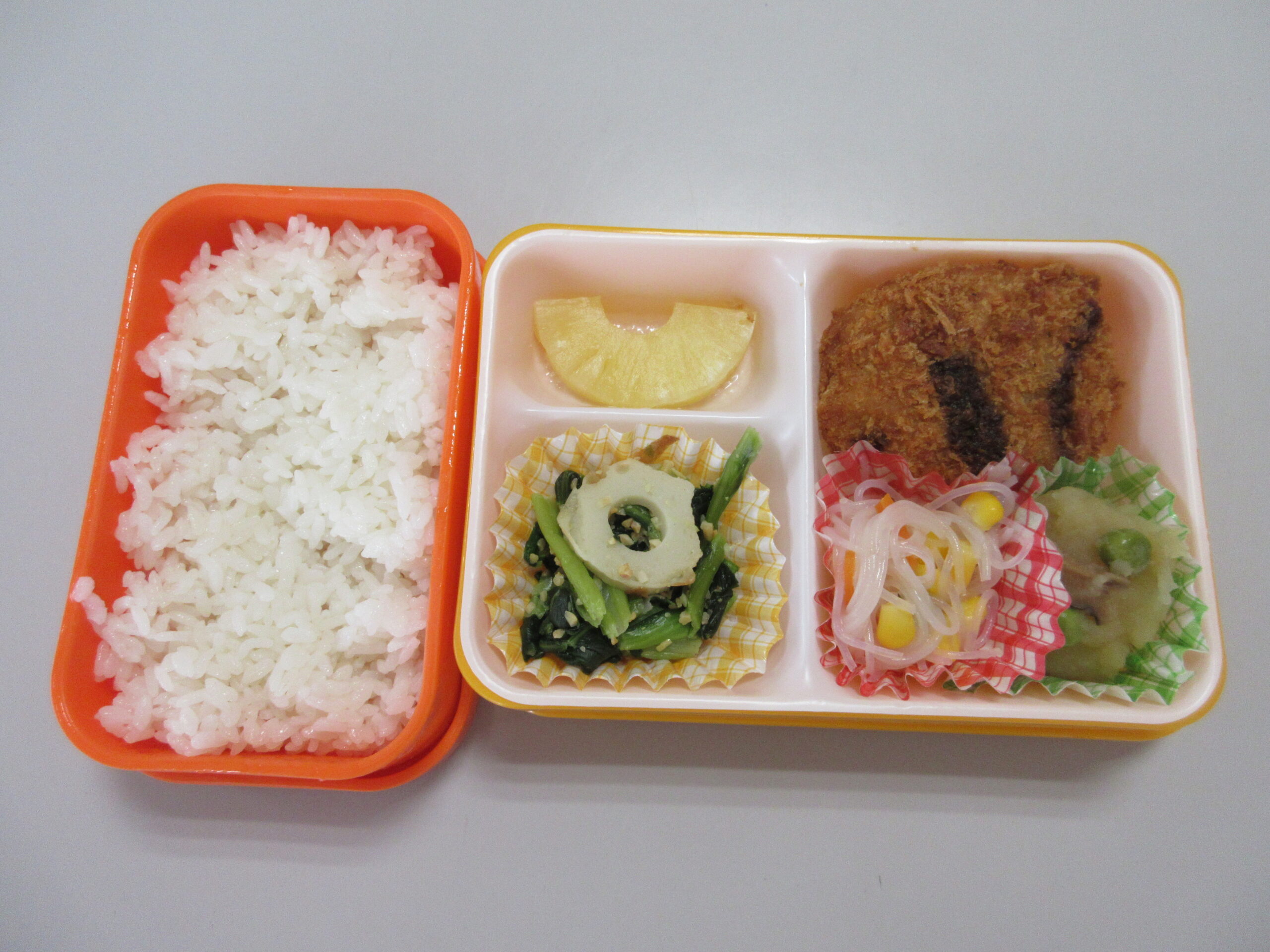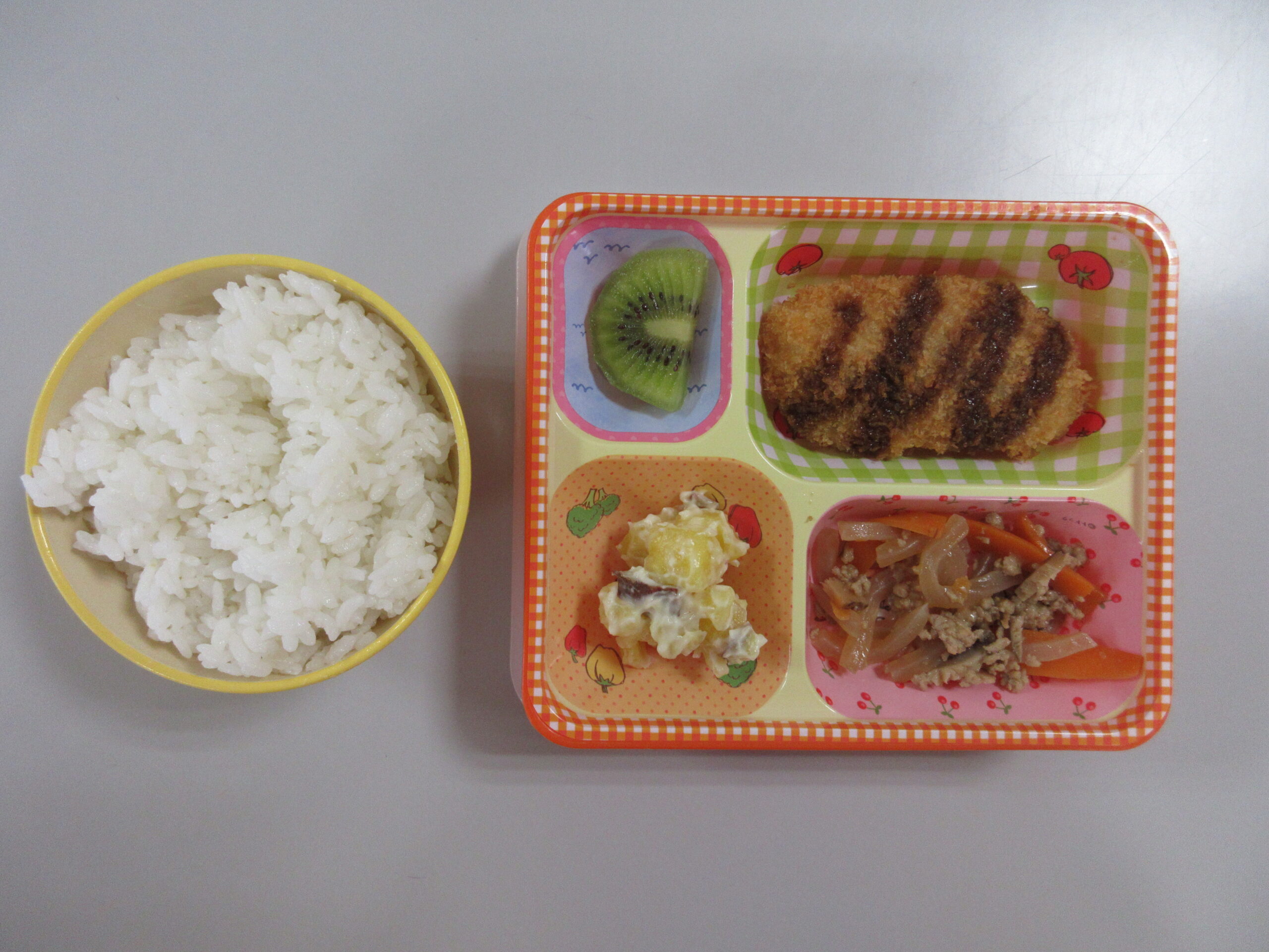 (79)令和6年度「見学会」 2024年10月2日 園内ブログ 本日10月2日(水)は令和7年度入園希望者を対象に見学会を実施いたしました。参加してくれたお友達は、年少学年と一緒に自由遊びをしたり、手遊びや運動会のお遊戯を一緒に踊り楽しい時間を過ごしました✨年少学年の在園児達は、幼稚園の中では一番小さいお友達ですが、今日はお兄さん・お姉さんとして小さい子に声を掛けたり、お手本を見せる姿がとても立派で頼もしく感じました! 短い時間ではありましたが、本日ご参加頂いた皆様、有難うございました! 今日の病気欠席者は、発熱1名です。 🍙今週の給食🍙