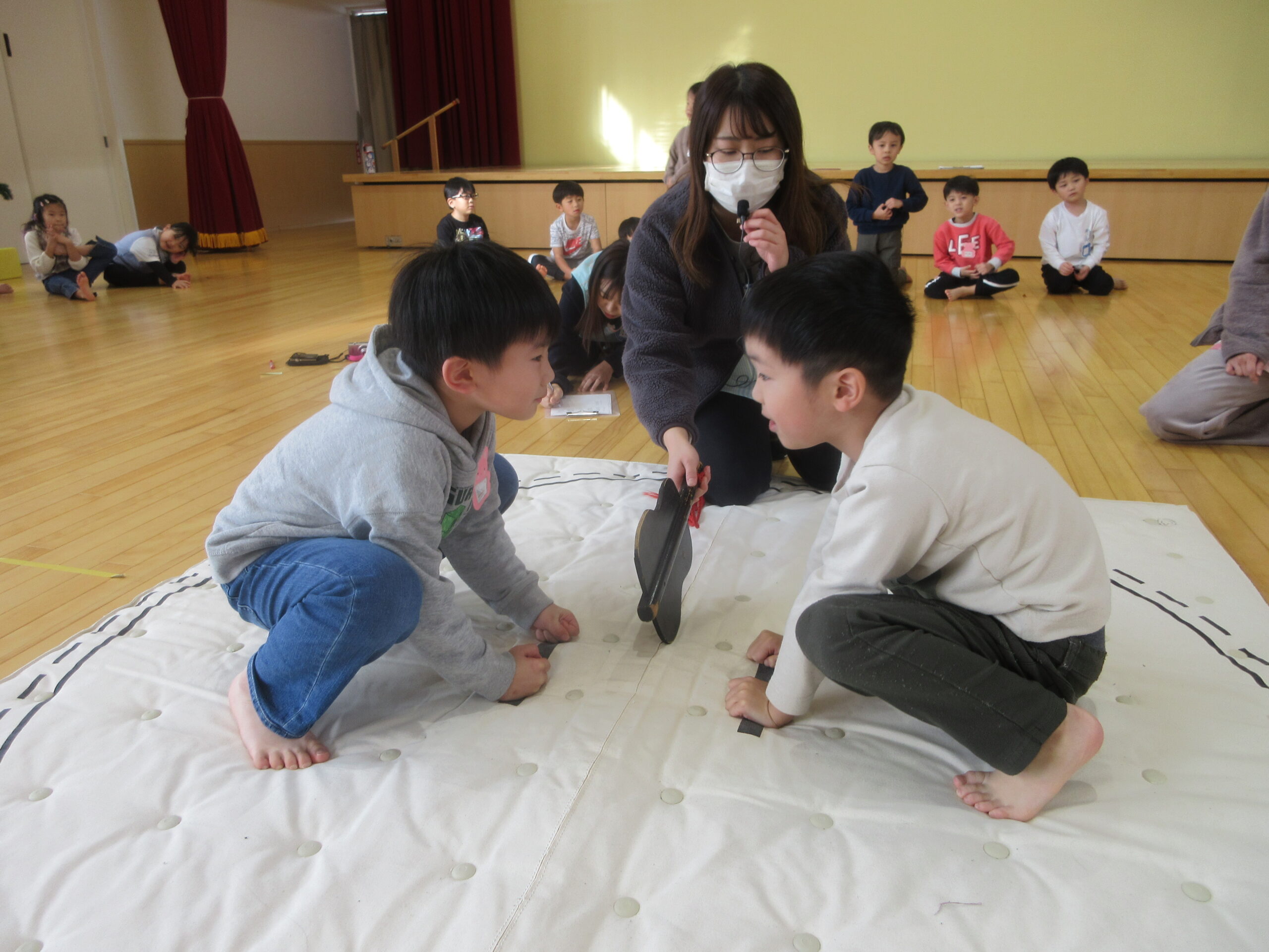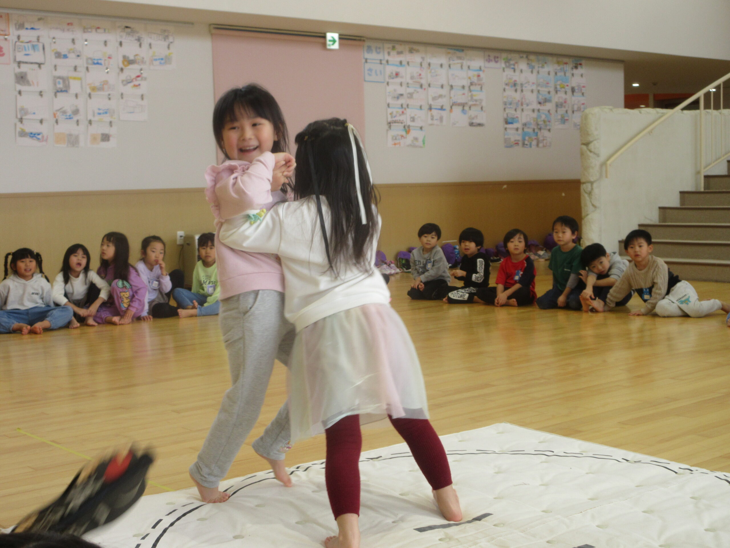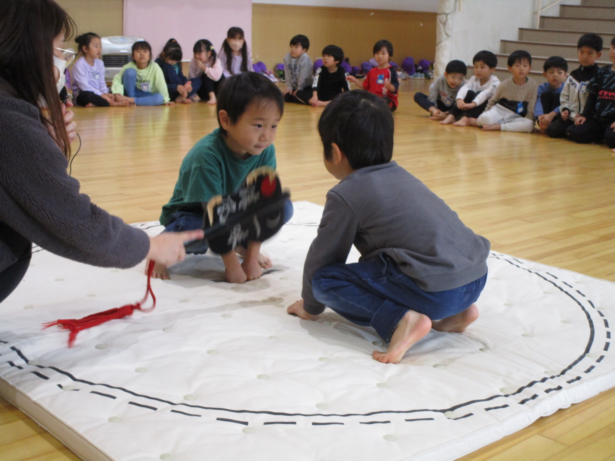 (102)令和6年度「年長学年 お相撲大会」 2024年12月5日 園内ブログ 本日12月5日(木)年長学年合同のお相撲大会をホールで行いました。他のクラスのお友達との取組で嬉しさや恥ずかしさもありながら、粘り強く戦う様子やお友達を応援する様子が見られていて、年長さんらしい白熱した戦いが沢山ありました🔥悔し涙を流すお友達もいましたが、3学期にも大会があるので力をつけて挑んでほしいです! 今日の病気欠席者は、風邪2名、発熱4名、嘔吐2名、咳5名、体調不良1名、大事をとって2名です。 🍙今日の給食🍙