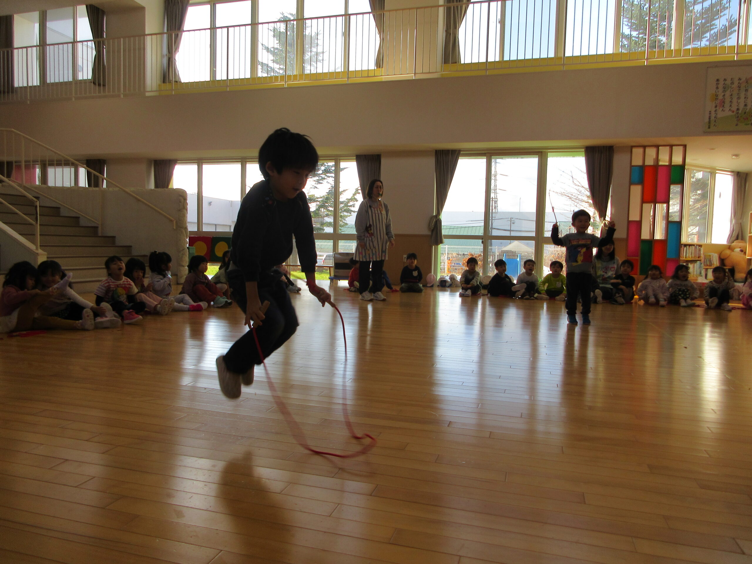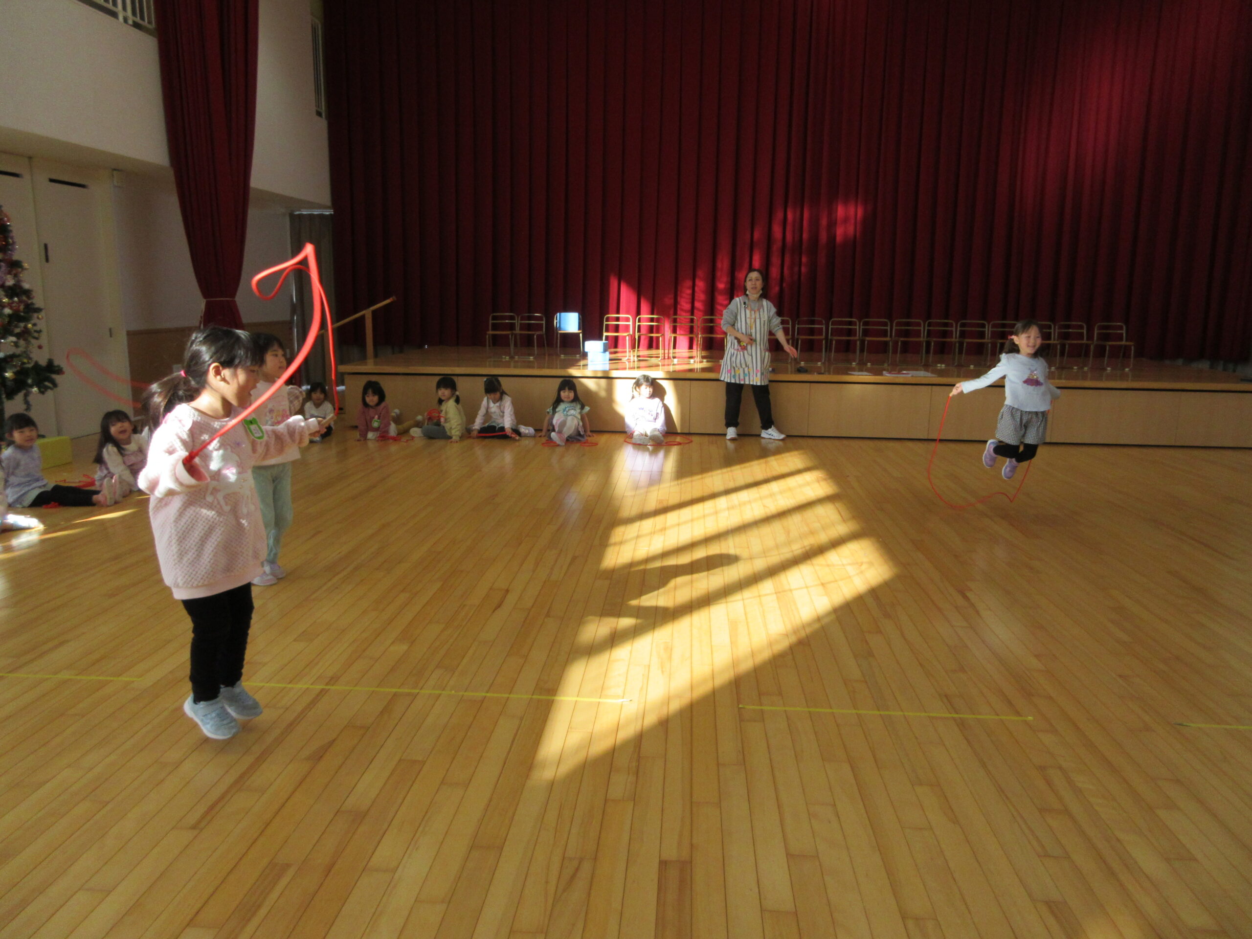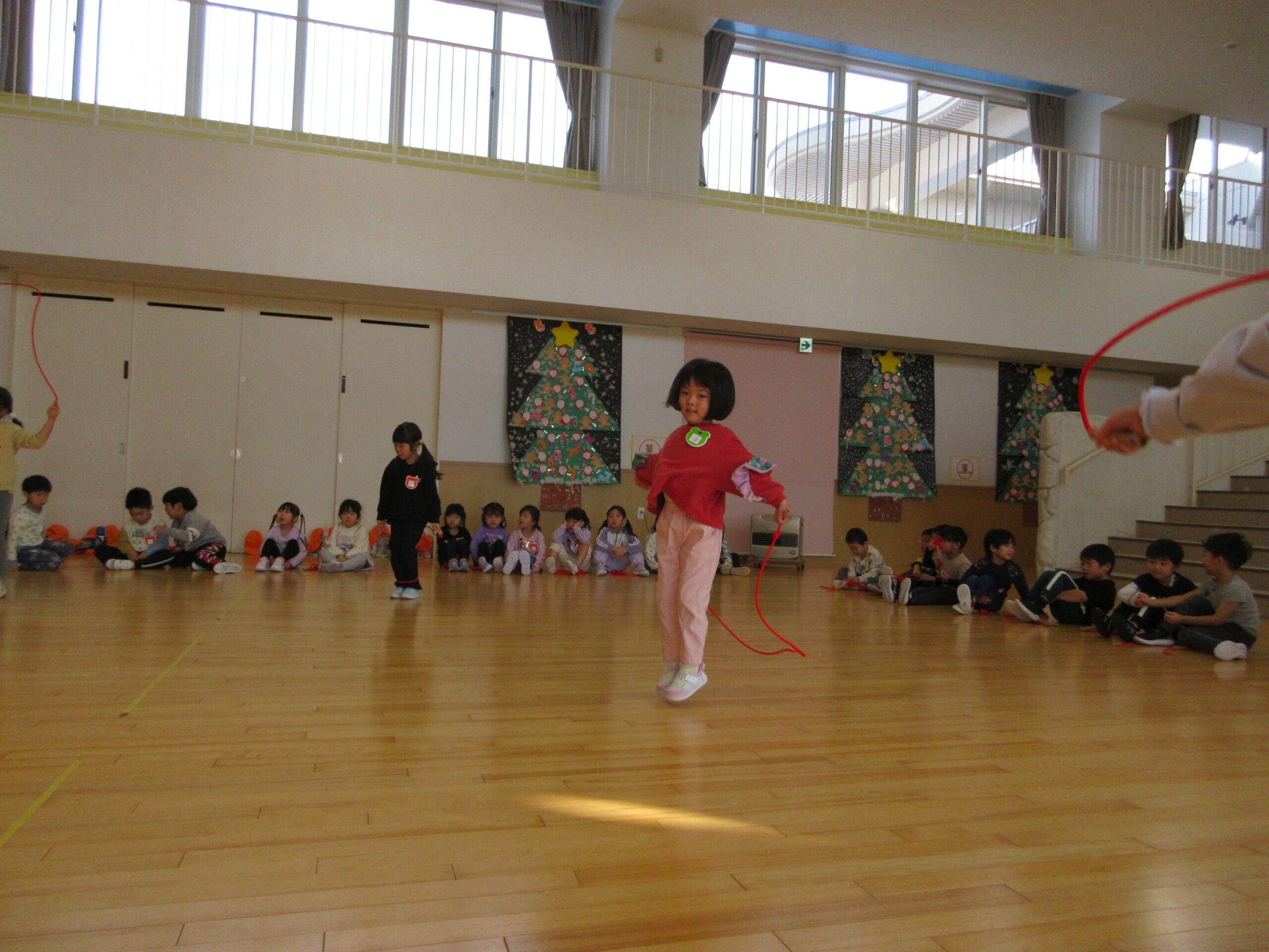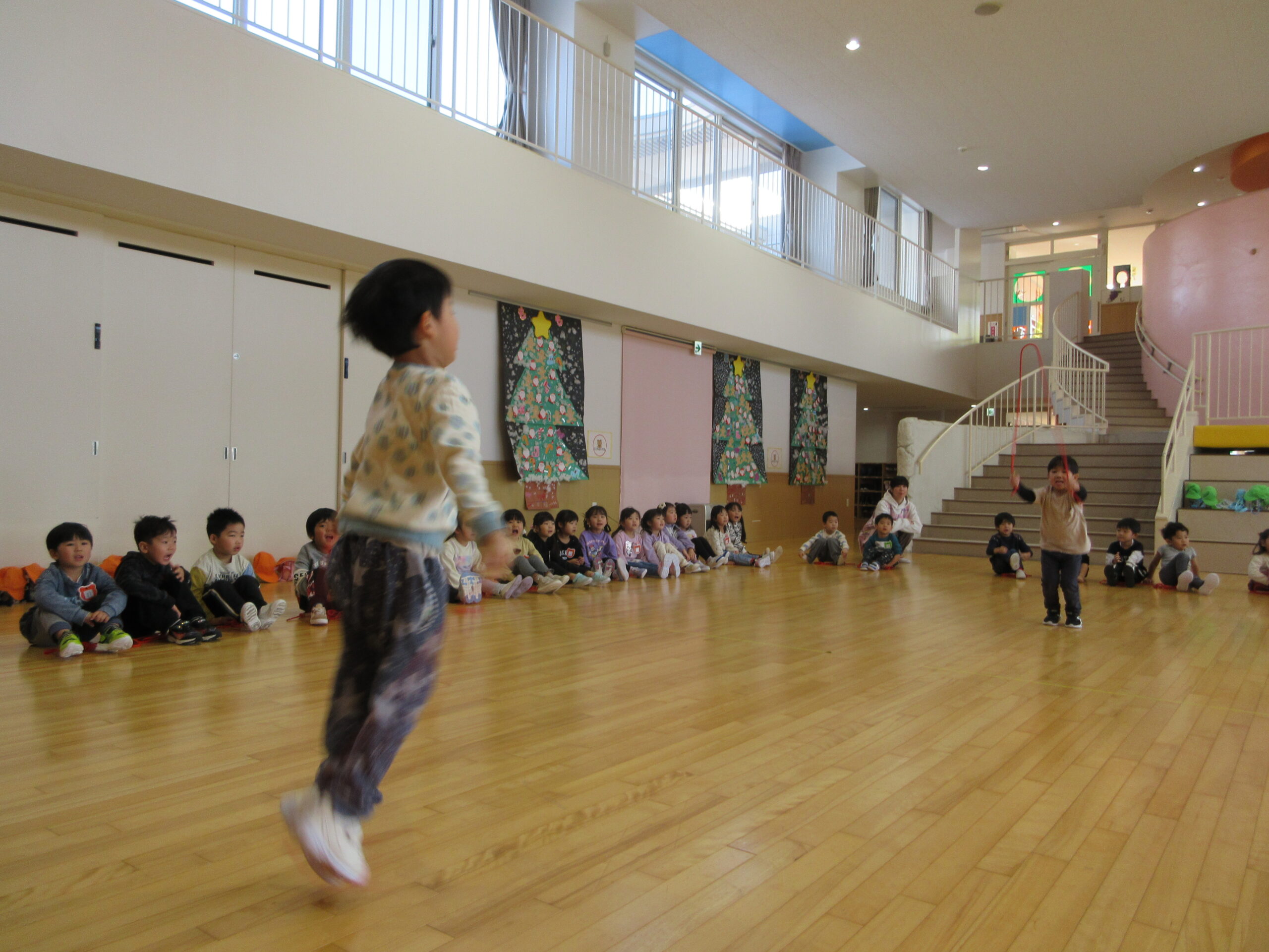 (106)令和6年度「年中学年 縄跳び大会」 2024年12月10日 園内ブログ 本日12月10日(火)3クラス合同でホールにて縄跳び大会を行いました。各クラス1~2名ずつのグループで、一番長く跳んだお友だちが勝ち残る持久戦です。少しずつ跳べるようになったお友だちも増えて、最後まで競争心を持って頑張る姿がみられました。3学期にも大会があるので、頑張ってほしいと思います。 今日の病気欠席者は風邪2名、発熱7名、咳1名、鼻水1名、大事をとって5名です。 🍙今日の給食🍙