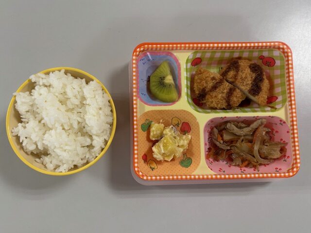 (107)令和6年度「年中学年 冬の壁面製作」 2024年12月11日 園内ブログ 本日12月11日(水)は冬の壁面製作を行いました⛄ゆきだるまのかたちを切り抜いたところにセロハンを貼りました。初めてセロハンを使用したので、感触を楽しんだり、静電気で手から離れず苦戦したりしながら完成できました。お部屋に飾るとクリスマス気分が一層盛り上がっている様子でした。 今日の病気欠席者は、風邪1名、発熱7名、咳3名、鼻水1名、体調不良4名、大事をとって4名です。 🍙今日の給食🍙