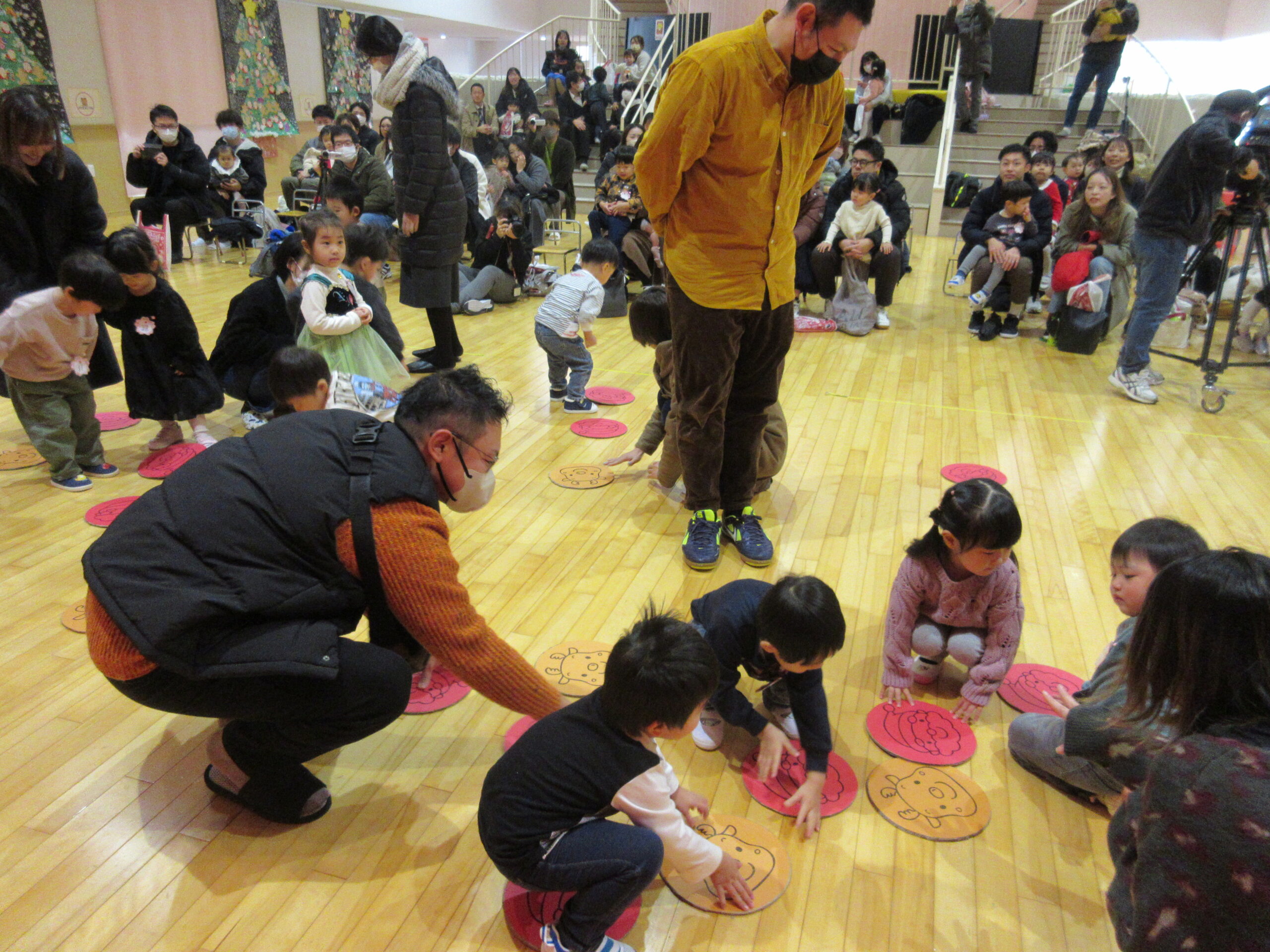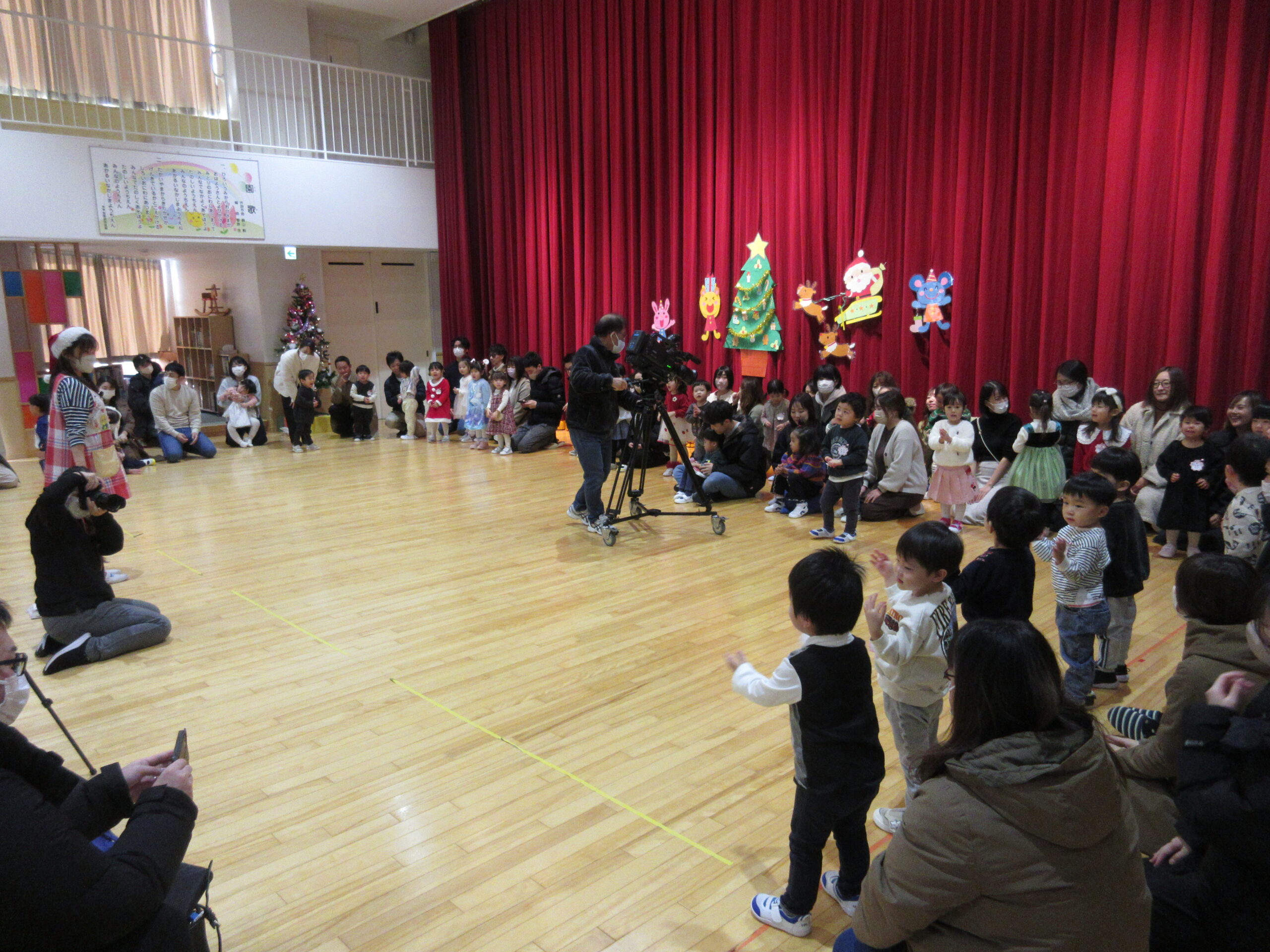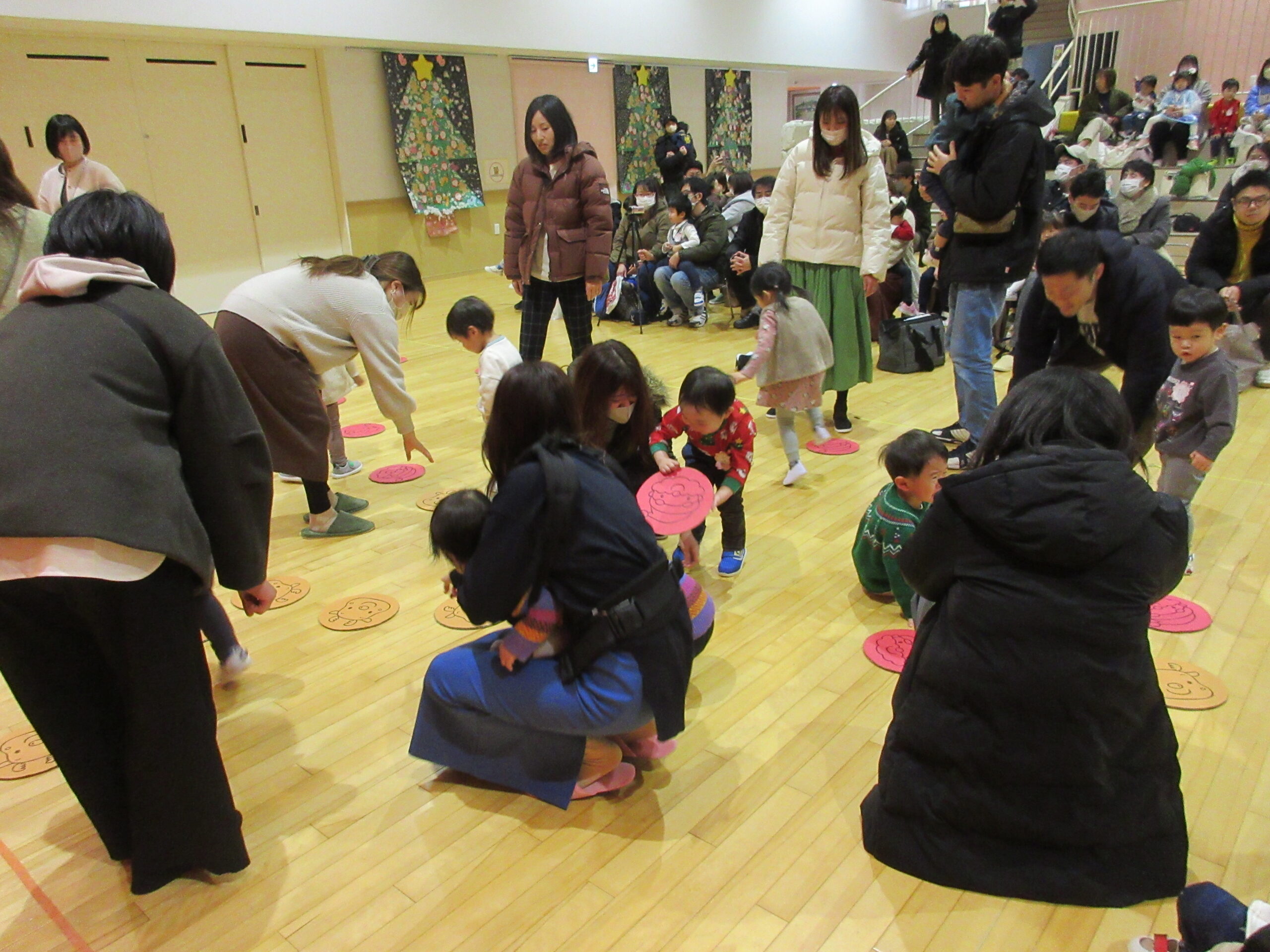 本日12月17日(火)プレスクールのクリスマス会をホールにて3クラス合同で実施いたしました。短い時間ではありましたが、手話歌や器楽を披露し、サンタさんとの交流や親子対抗オセロゲームを楽しむことができました🎅